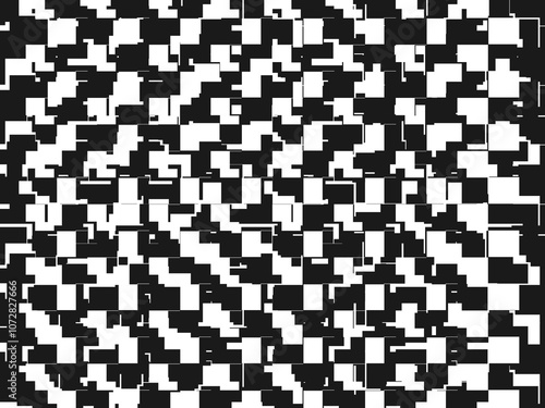 © Wendi, Fototapeta premium Error digital concept. Black random shapes on white background. Wrong lines and blocks. Video distortion effect. Abstract pixels and noise. Vector illustration.