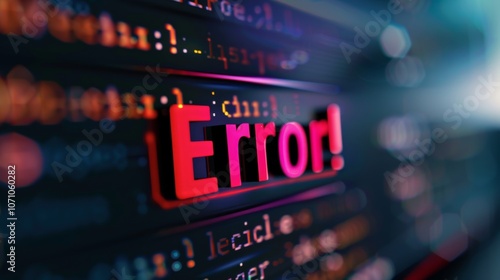 Obraz premium Error message displayed on a digital screen with colorful code background...