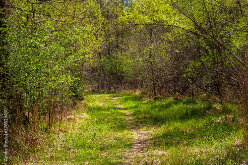 Fototapeta premium Erstes zartes Frühlingsgrün mit Riedweg