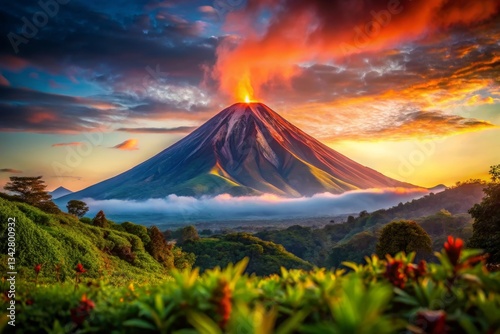 © Arethaawykoff, Fototapeta premium Erupting Volcano at Sunset
