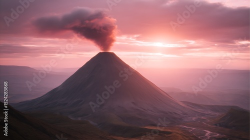 © Dimas, Fototapeta premium Erupting volcano at sunset landscape view