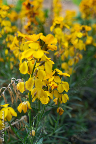 © artemstepanov, Obraz premium Erysimum cheiri flowers, Cheiranthus cheiri or wallflower