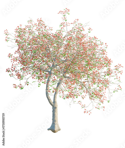 © DH Tree Stock, Obraz premium Erythrina variegata tree, front view, cutout, transparent background, isolate, Beautiful tree blossoms with vibrant red buds in springtime scenery