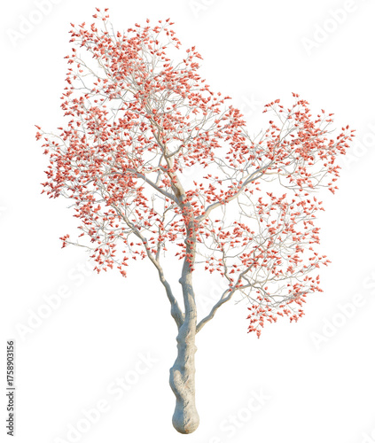 Fototapeta premium Erythrina variegata tree, front view, cutout, transparent background,...