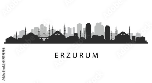 © godsfavoritearts, Naklejka premium Erzurum City Skyline Black and White.