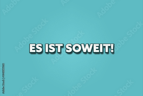Obraz premium Es ist soweit (The time has come) - A turquoise banner illustration with white text.