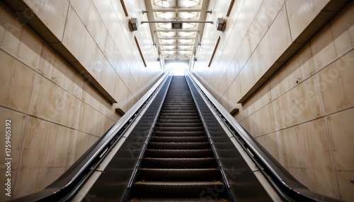 © Sam-th, Obraz premium Escalator Leading Upward in Modern Public Transit Space with Abundant Natural Light