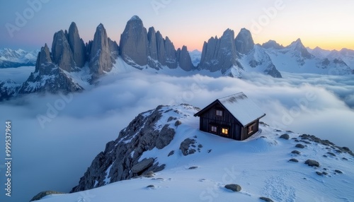 Fototapeta premium Escape to the clouds A secluded mountain retreat