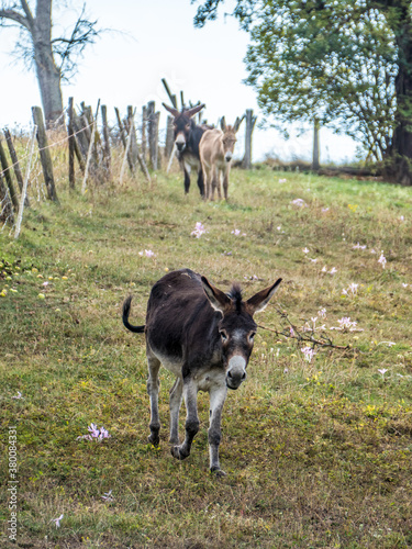 © focus finder, Naklejka premium Eselfamilie auf der Weide