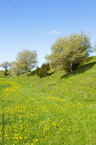 © Lars Johansson, Obraz premium Esker with blooming dandelions on meadow in spring