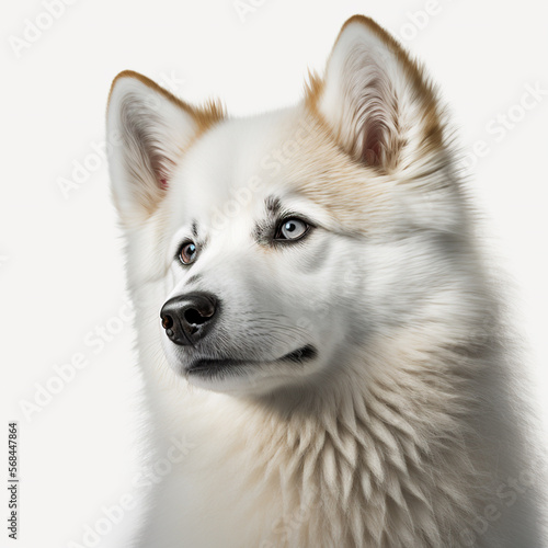© LemoBoy, Fototapeta premium Eskimo Dog looking at camera, Photo Studio, Generative AI