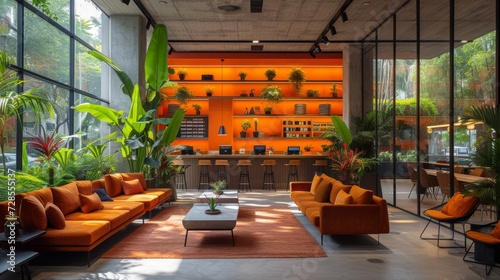 Naklejka premium "Espace intérieur moderne et stylisé : Salon ou hall d'accueil contemporain"