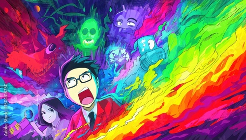 © LeNo, Fototapeta premium Esplosione di colori e personaggi fantastici