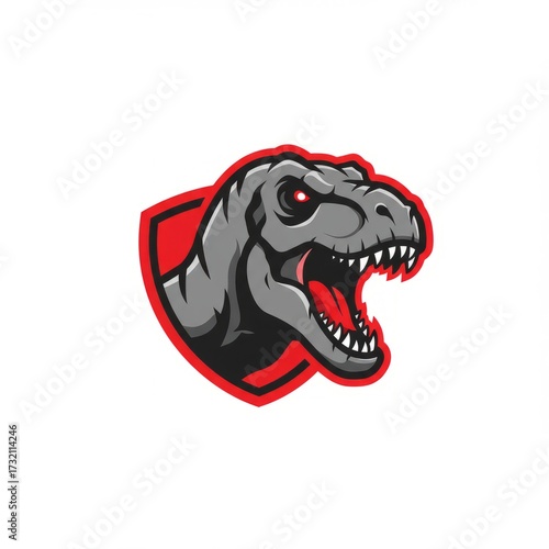 © Karuni, Obraz premium Esport T-Rex mascot illustration on white background. Fierce, bold, and powerful dinosaur character design, perfect for gaming logo, sport team branding, and digital identity concepts.