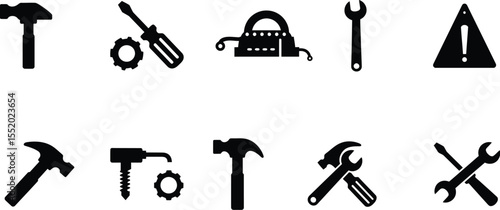 Fototapeta premium Essential Tool Icon Set - Hammer & Screwdriver (High Contrast Vector)
