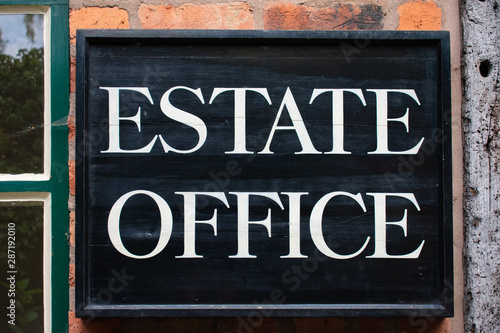 © Caroline, Obraz premium Estate office signage, on an old country estate building.