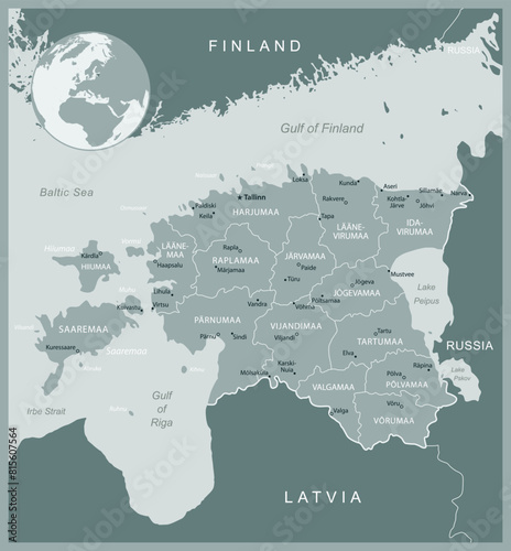 © gt29, Obraz premium Estonia - detailed map with administrative divisions country. Vector illustration