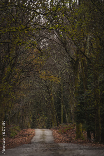 Fototapeta premium Estrada asfalto na floresta no outono dramático
