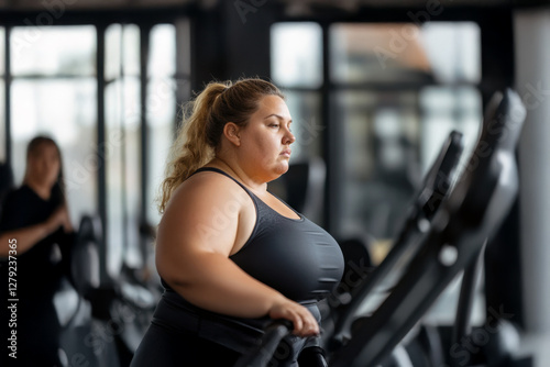 © Bojan, Obraz premium etermined Overweight Woman Using Gym Equipment