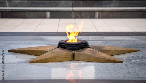 Naklejka premium Eternal flame burns atop a star monument set in stone, framed by steps in the...