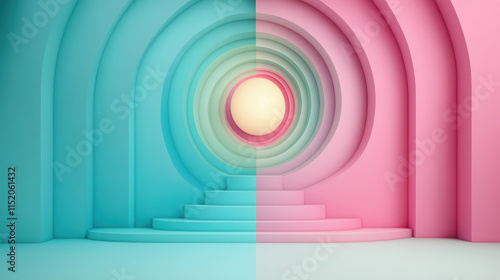© Pisahouse, Naklejka premium Eternity, A surreal image featuring an infinite staircase that spirals around a glowing element, creating a visually captivating and dreamlike atmosphere.