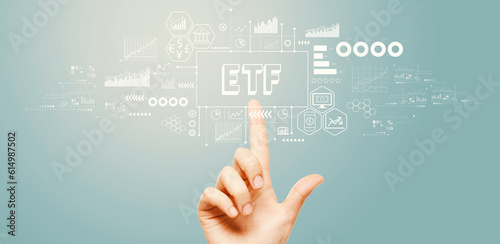 Fototapeta premium ETF theme with hand pressing a button on a technology screen