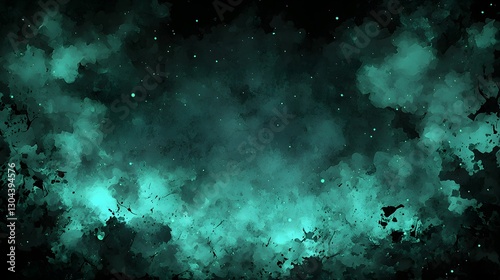 © wannathon, Obraz premium Ethereal Abstract Background with Turquoise Glow and Dark Clouds in a Mystical Atmosphere
