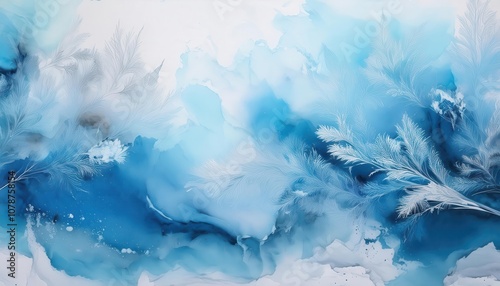 Fototapeta premium Ethereal Abstract Watercolor Winter Landscape in Cool Blues and Whites,...