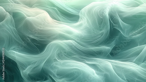 © darion, Obraz premium Ethereal abstract waves in soft green and white hues.