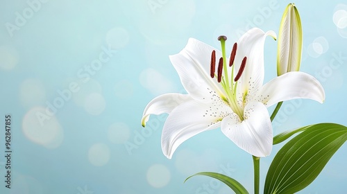 © Dee, Fototapeta premium Ethereal Beauty of a White Lily Blossom Enhanced by Soft Floral Background