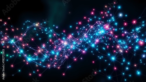 Fototapeta premium Ethereal Bioluminescent Data Visualization - Abstract Nodes in Blue & Pink