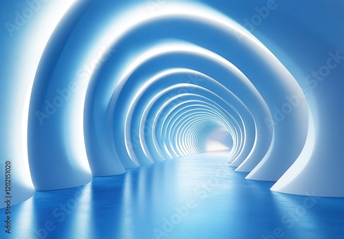 Obraz premium Ethereal Blue Corridor with Smooth Curved Walls and Soft Lighting Creating an...