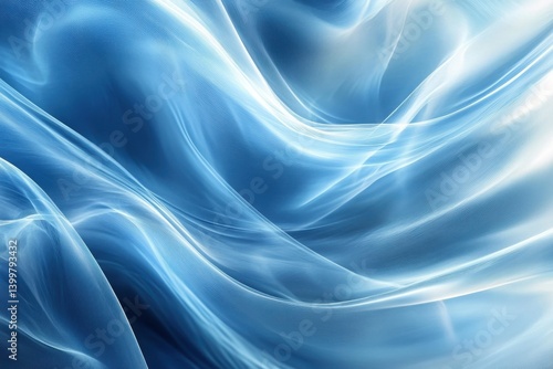 Obraz premium Ethereal blue fabric flowing gracefully in soft light, creating a serene and...