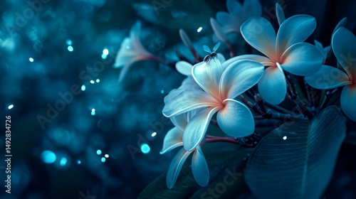 Fototapeta premium Ethereal Blue Flowers with Delicate Petals and Soft Glowing Lights in a...