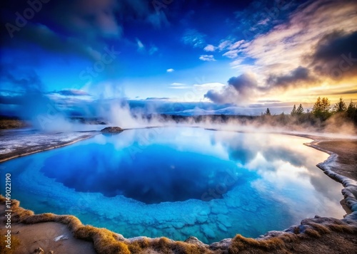 © Adisorn, Naklejka premium Ethereal Blue Geothermal Lake, Iceland: Misty Hot Springs Landscape