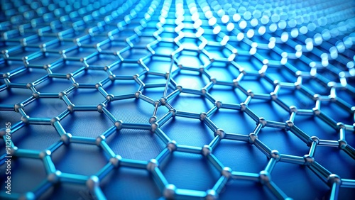 Fototapeta premium Ethereal Blue Graphene: A Symphony of Interconnected Hexagons AI generated