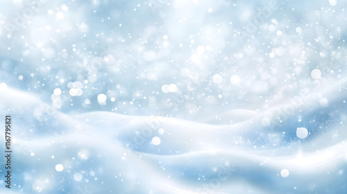 Naklejka premium Ethereal Blue-White Bokeh: A Reverie of Snowflakes in Dreamlike Luminescence