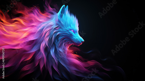 Obraz premium Ethereal Blue Wolf in Flames - Mystical Animal Spirit