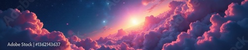 © Supagorn, Naklejka premium Ethereal celestial body amidst swirling cosmic clouds, space, abstract, universe