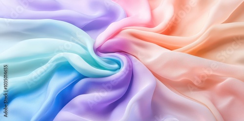 Fototapeta premium Ethereal chiffon fabric in vibrant rainbow colors, flowing gracefully and dynamically in a soft, airy breeze.