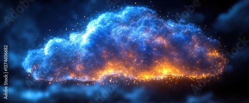 Fototapeta premium Ethereal cloud illuminated with orange and blue hues floating amid a dark,...