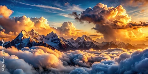 © Wanlop, Fototapeta premium Ethereal Cloudscape: Dreamlike Sky Above Mountain Peaks
