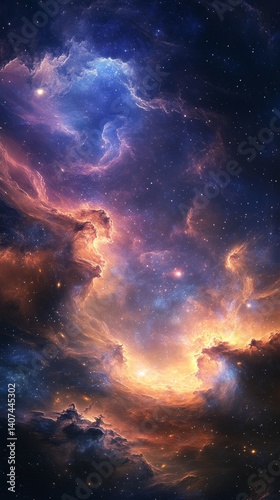 Fototapeta premium Ethereal Cosmic Landscape: Colorful Nebula & Stars in the Vast Universe