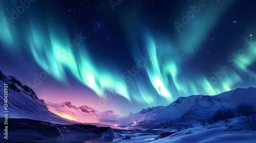Naklejka premium ethereal dance of Aurora Borealis a mesmerizing spectacle born from...