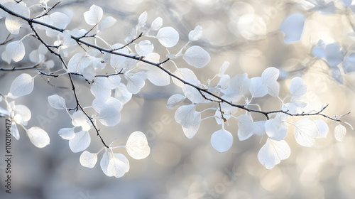 © New Robot, Fototapeta premium Ethereal Dance of White Branches and Leaves in the Gentle Breeze: A Symphony of Nature's Grace