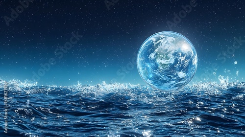 Obraz premium Ethereal Earth encased in a protective water bubble floating in the vastness...