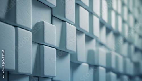 © Abdul, Fototapeta premium Ethereal Elegance: Light White-Blue Blocks Wall Background"