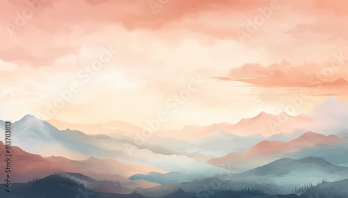 Obraz premium Ethereal Escapade: Illustrated Landscape with Dreamy Mountains and Sky Above
