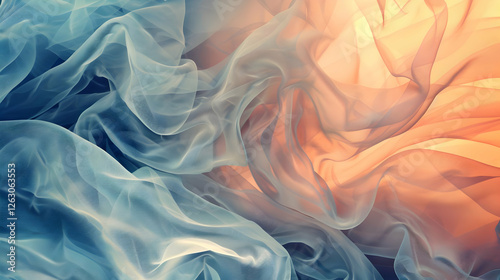 Obraz premium Ethereal fabric swirls in soft hues of blue and orange, creating a dreamy,...
