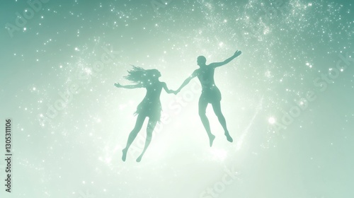 Naklejka premium Ethereal figures explore a dreamlike universe.
